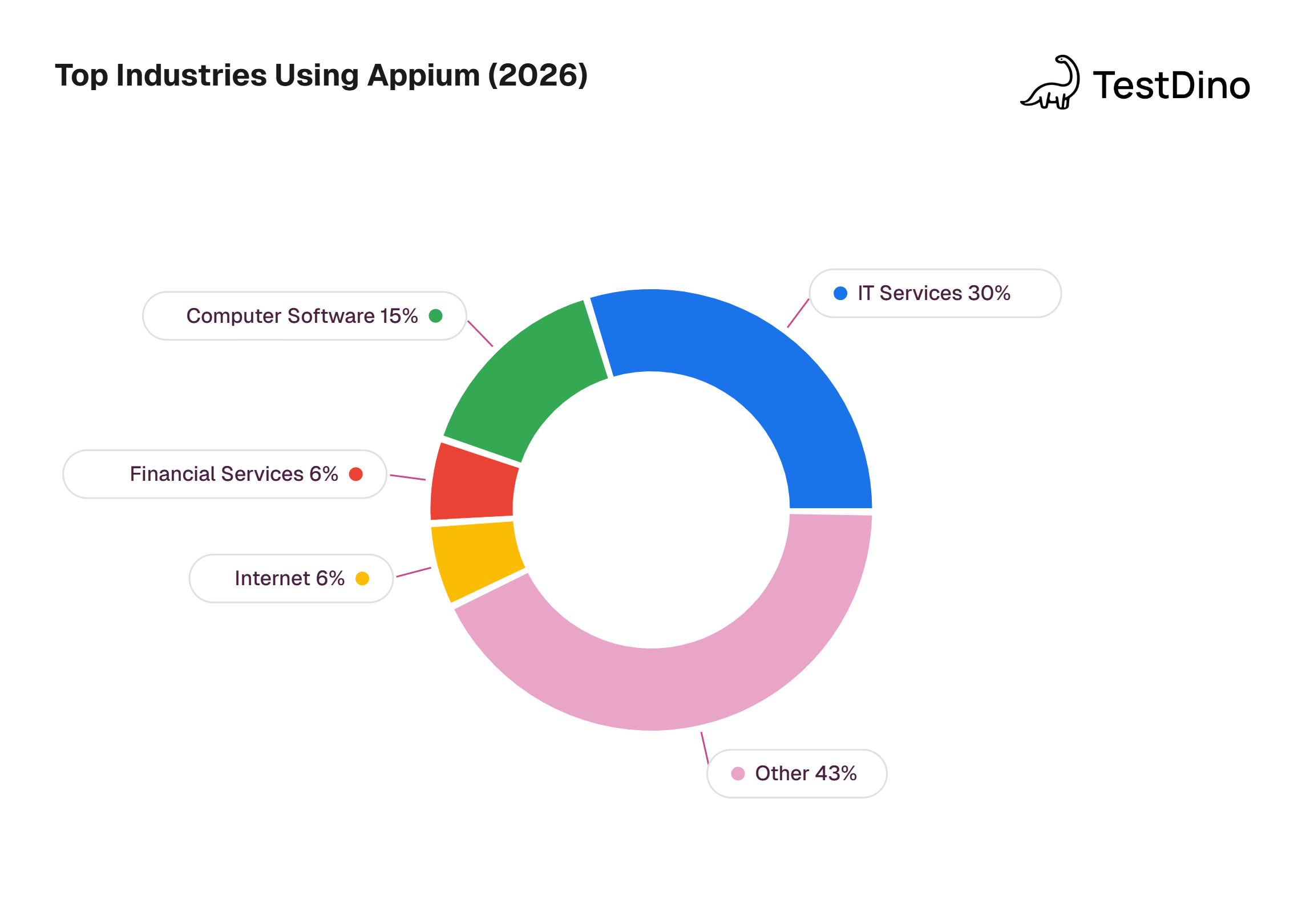 IT Services leads because outsourced QA firms build Appium frameworks for multiple clients. Financial services are notable because banking apps require rigorous cross-platform testing to ensure regulatory compliance.