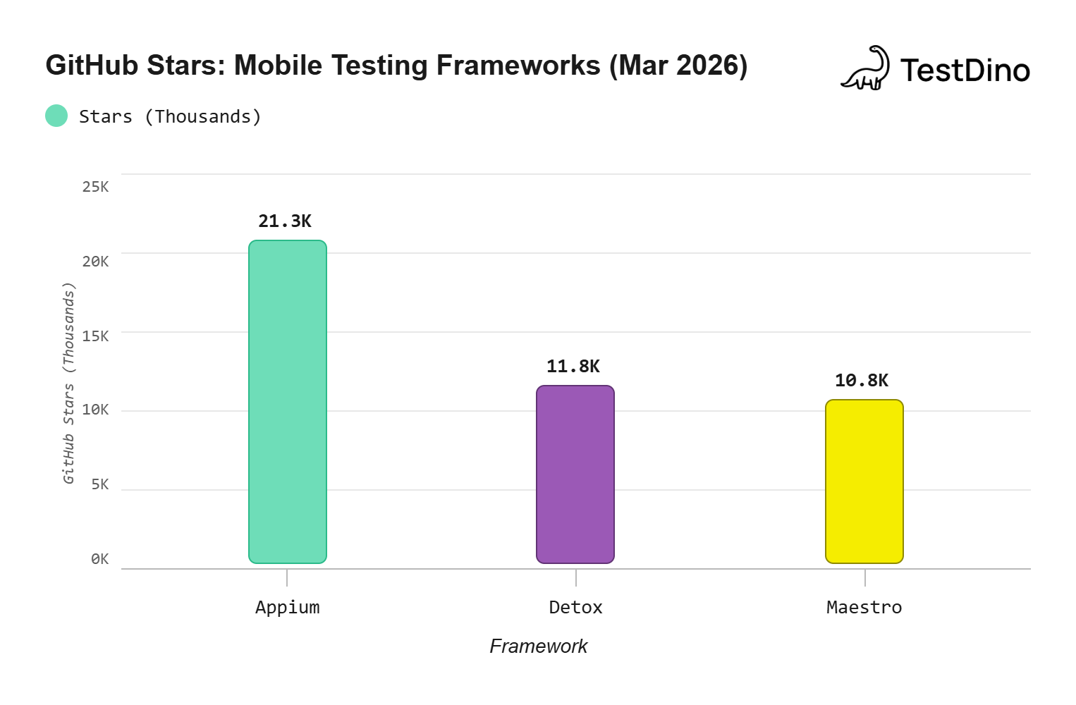 Learn Appium market share in 2026, adoption signals, GitHub activity, job demand, and comparisons with Maestro and Detox.
