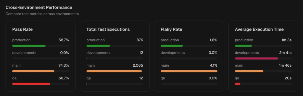 Which environments cause flakes Cross-Environment Comparison shows flaky rate per environment side by side