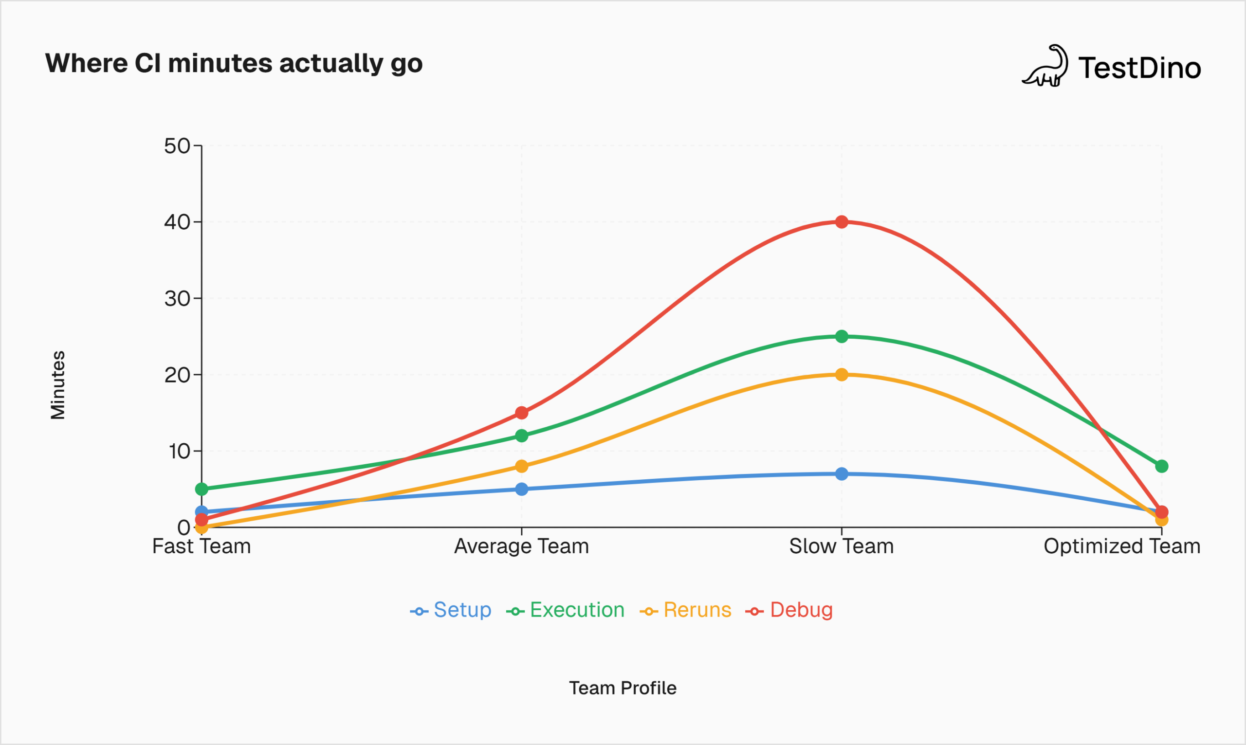 What to do if you're above 20 minutes: Don't start by rewriting tests. First, figure out which of the four budget components (setup, execution, reruns, debug) is the largest. That tells you where to cut.