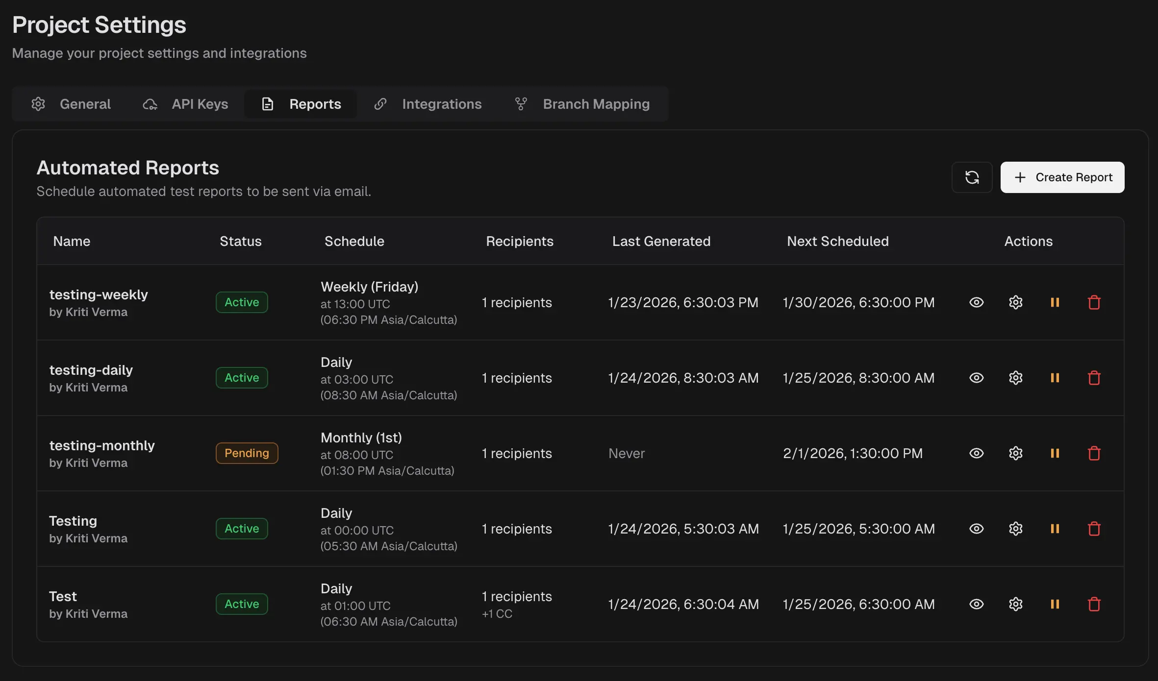 - Analytics adds average flakiness, new failure rate, and retry trends.