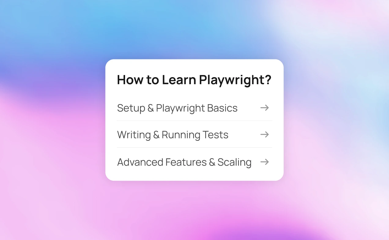 10-step roadmap to learn Playwright from zero to production. Working code, time estimates, and clear checkpoints at every step of the way.