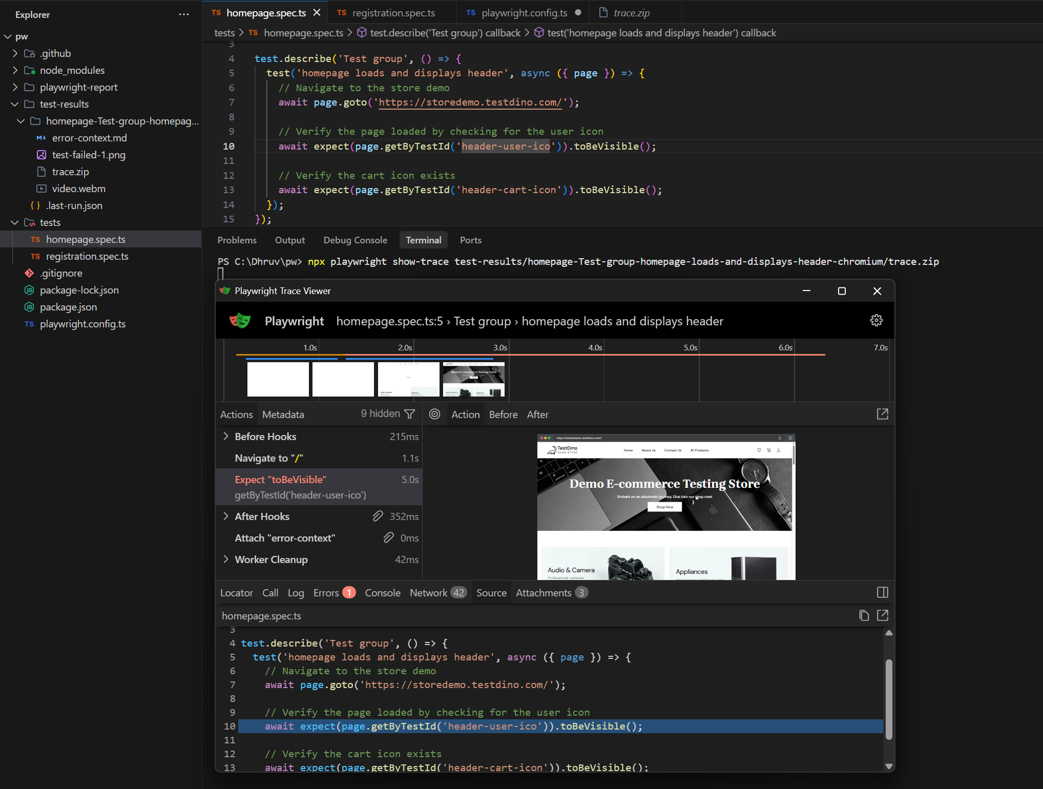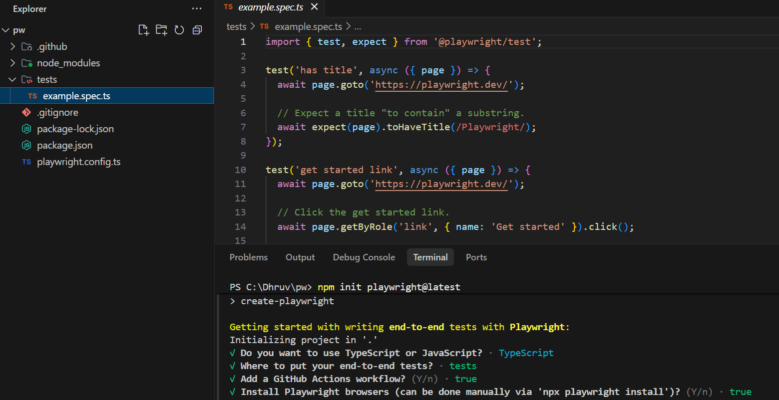 Tip: Install the Playwright VS Code extension. It lets you run and debug tests directly in your editor. The Playwright best practices docs recommend it as the starting point..