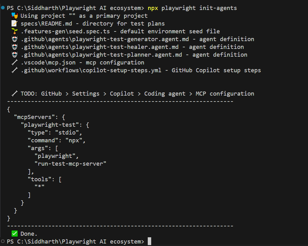 It also outputs the MCP config JSON you need to paste into GitHub > Settings > Copilot > Coding agent > MCP configuration if you want the agents to work with GitHub Copilot's coding agent in pull requests.