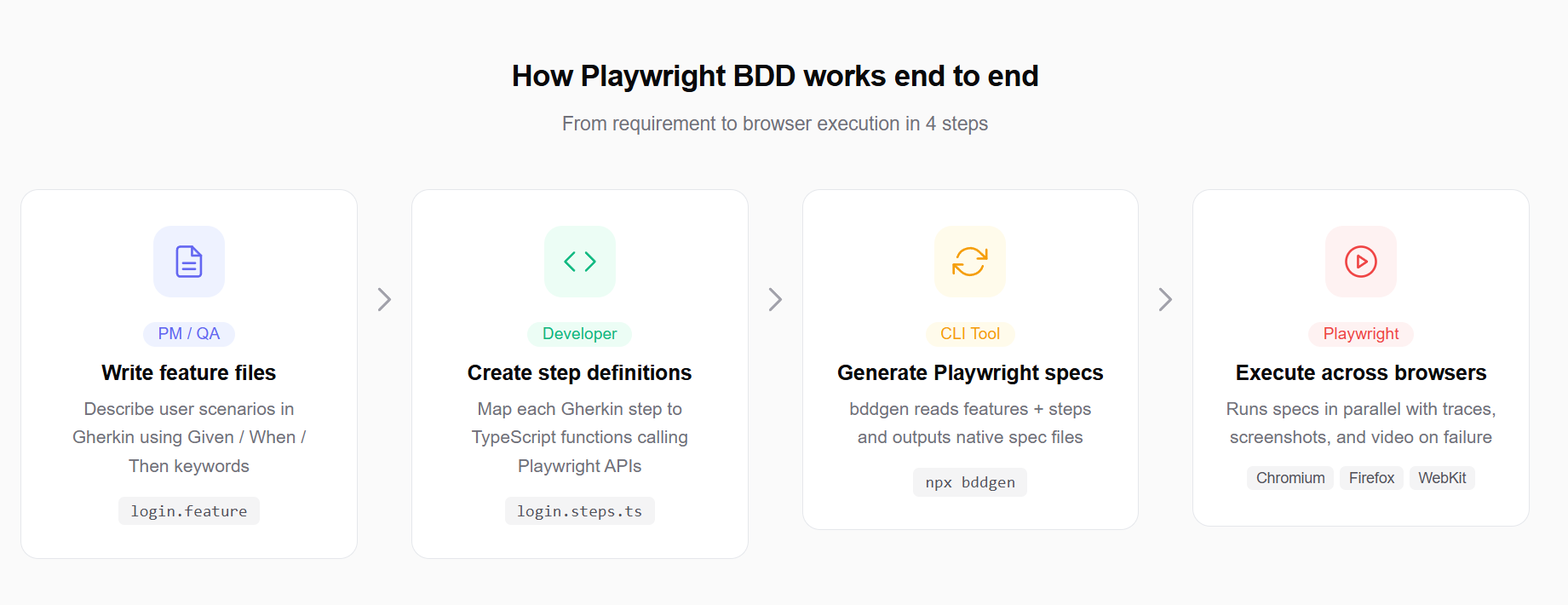 If you are already using Playwright, adding BDD is not a rewrite. It is a layer that makes your tests readable, reviewable, and connected to the actual requirements your team cares about.