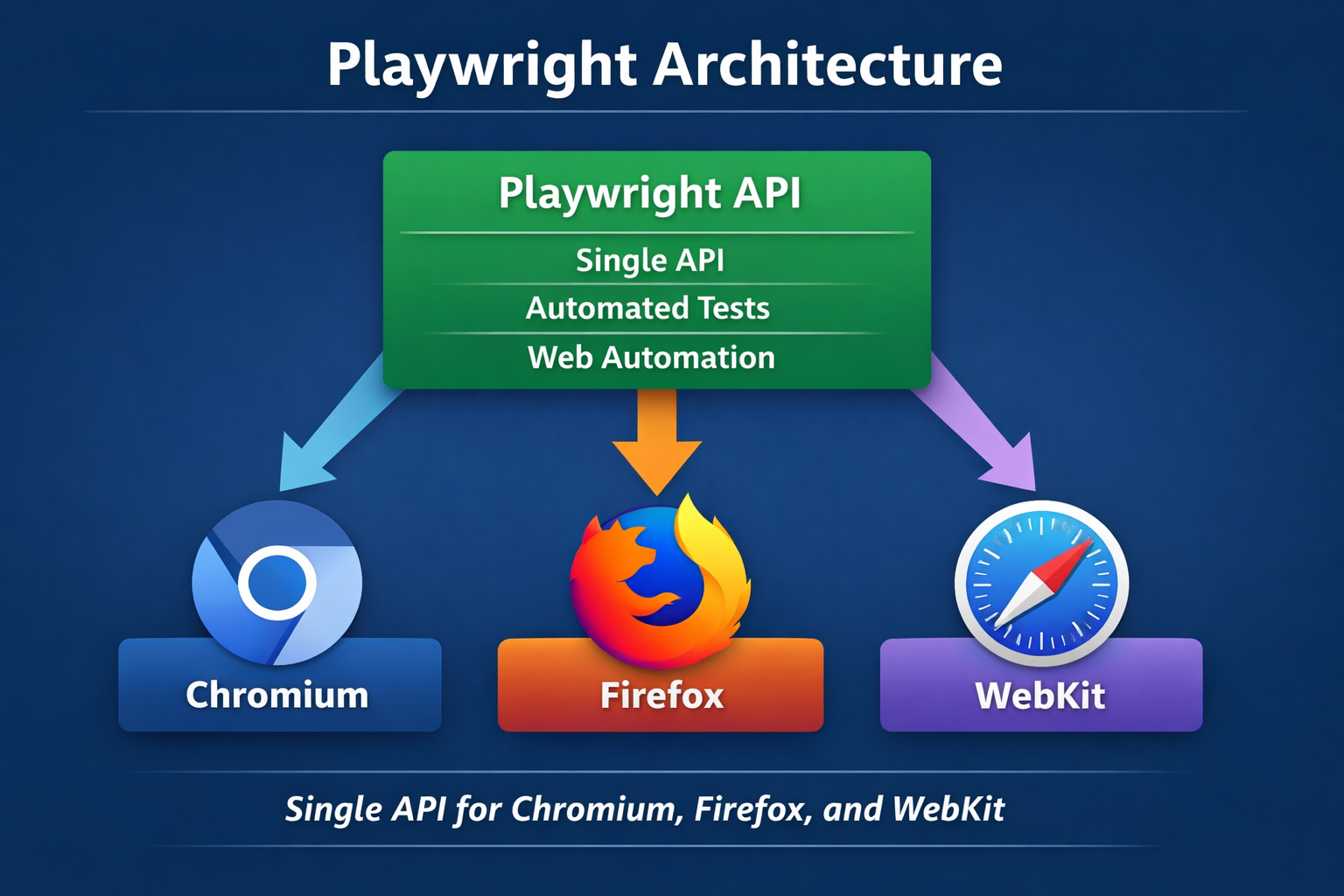 Playwright runs tests across Chromium, Firefox, and WebKit using a single, unified API. You write one test, and Playwright executes it against all three rendering engines without requiring separate test scripts or driver configurations.