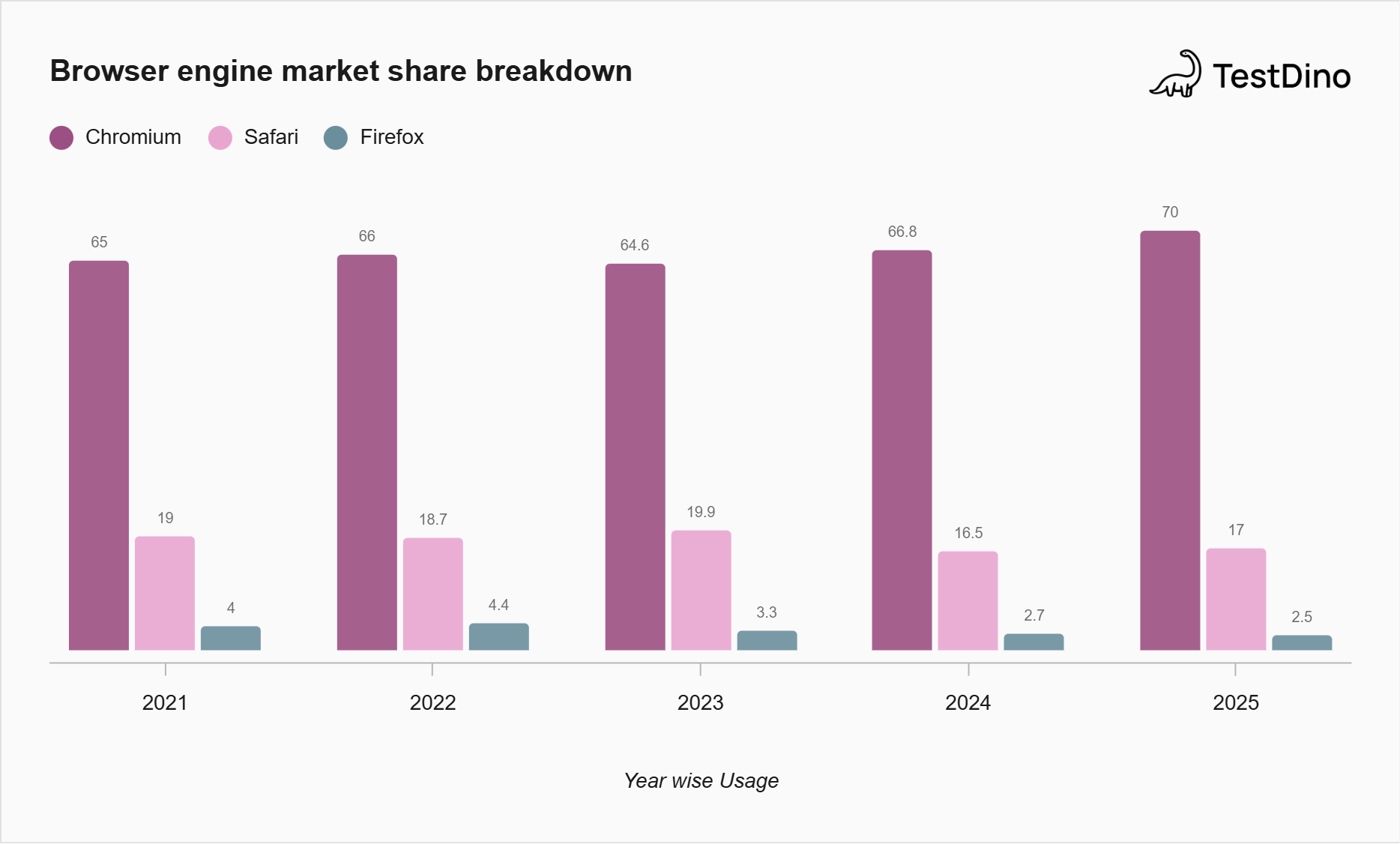 When you include Edge (around 13% desktop share) and other Chromium-based browsers, you're covering roughly 80% of desktop users with one engine.