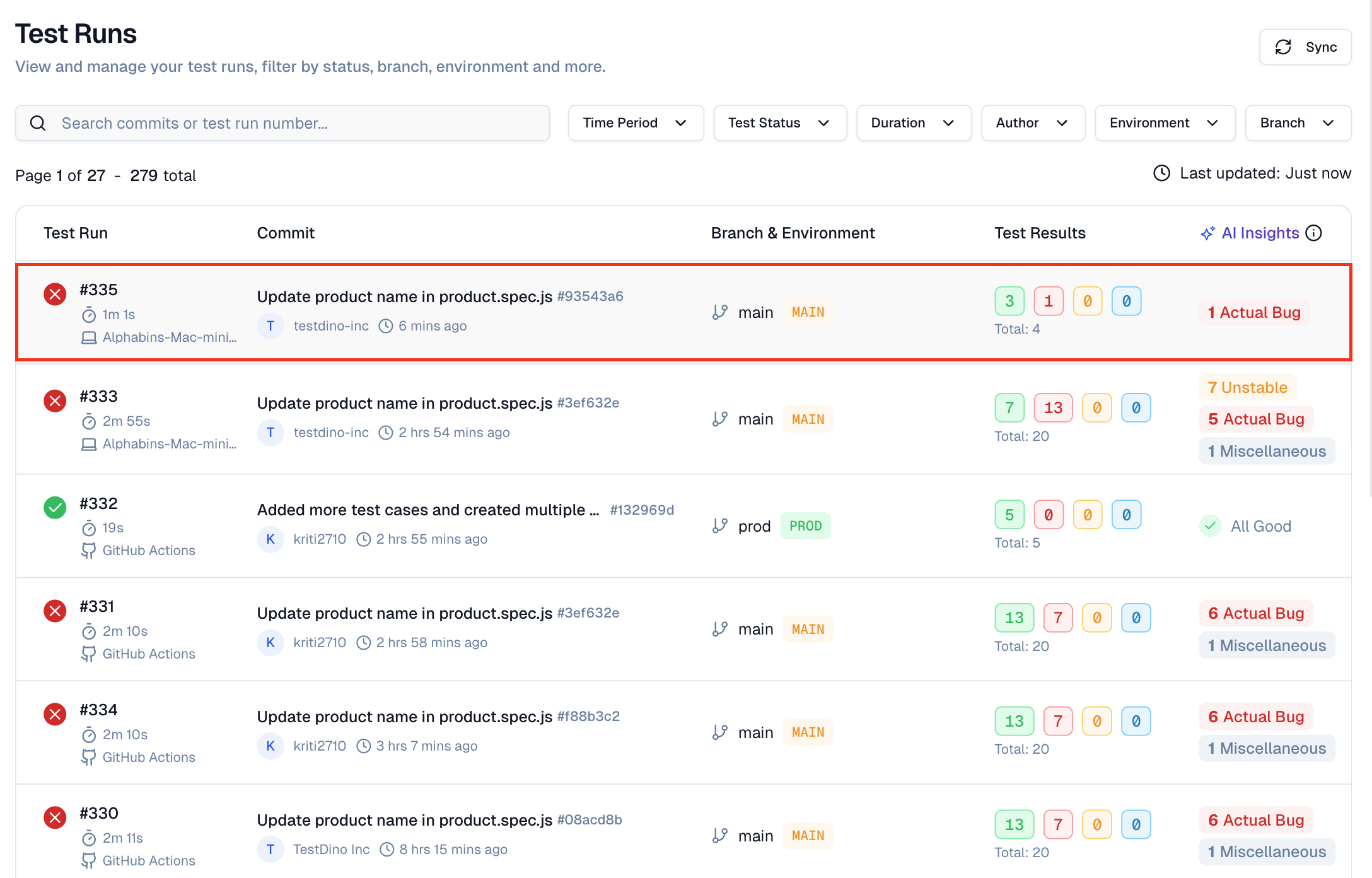 AI hints that help separate real bugs from flaky tests or environment issues