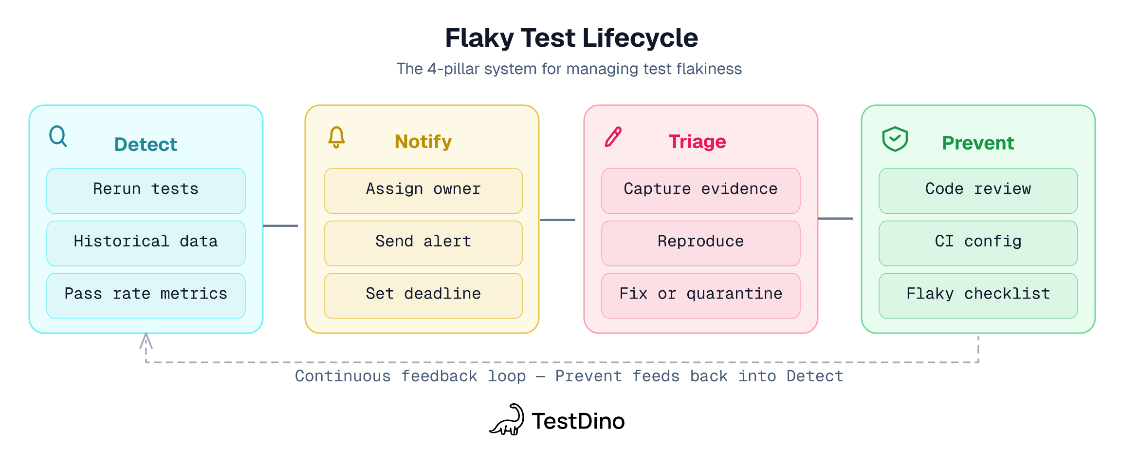 One finding worth knowing: research on co-occurring test failures found that 75% of flaky tests belong to failure clusters. They tend to fail together and share an underlying cause. When 1 test flakes, look at what else failed in the same run. Instead of investigating 100 individual failures, you end up fixing 3 root causes.