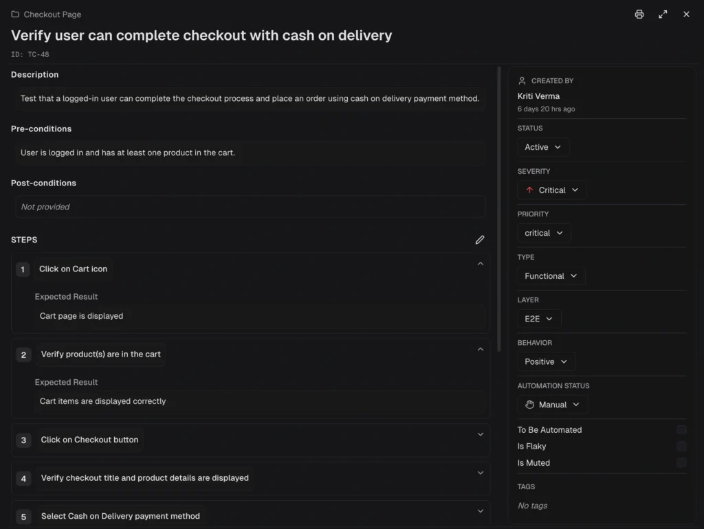 TestDino's test management lets you organize test cases, group them into suites, and manage them at scale with bulk operations.