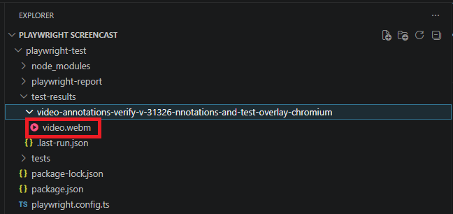 The output lands in your test-results/ folder as a .webm file. You can enable it two ways:
