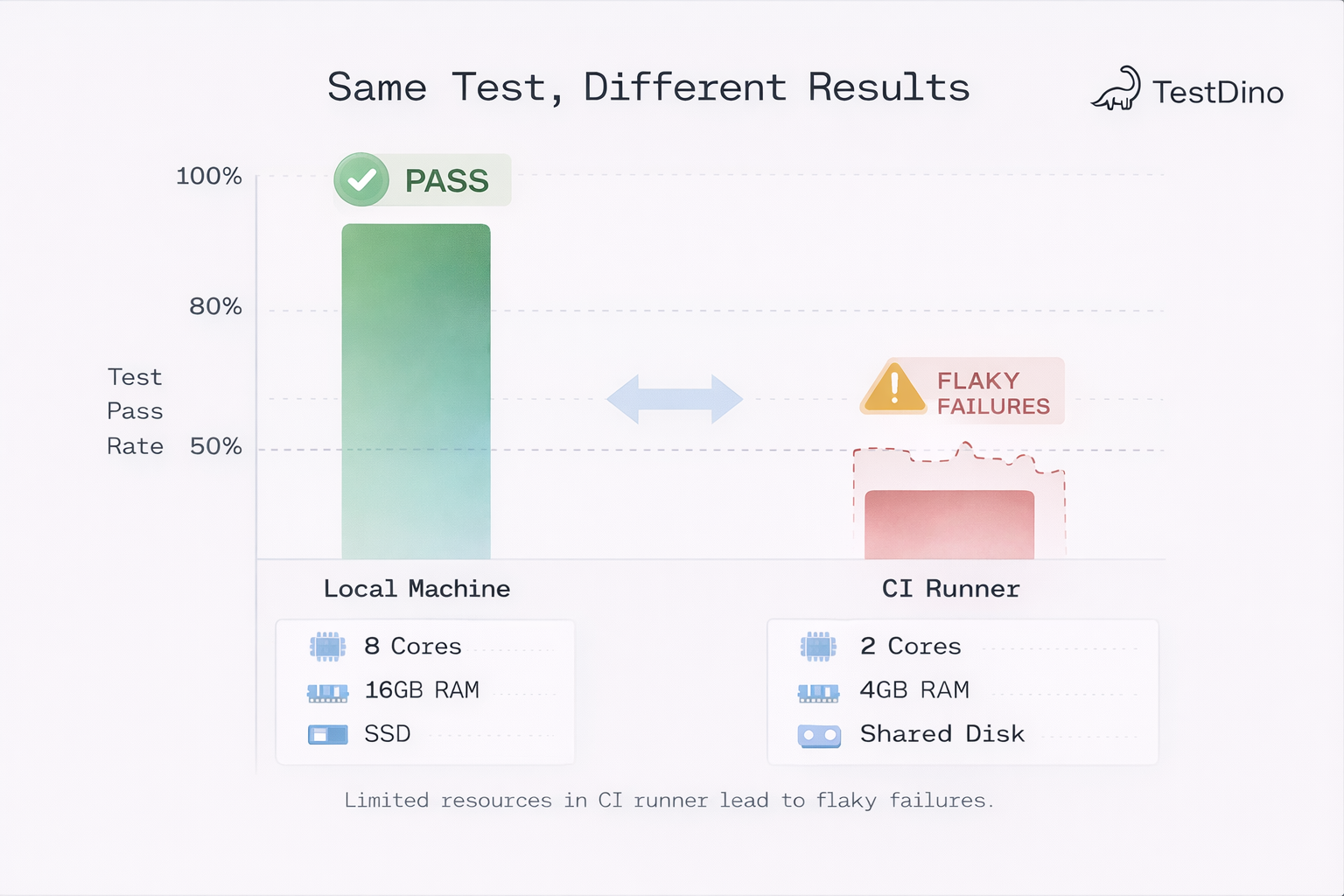 This means almost half of your flaky tests aren't flaky because of bad test code — they're flaky because CI runners have variable resources. In Playwright, this shows up as: