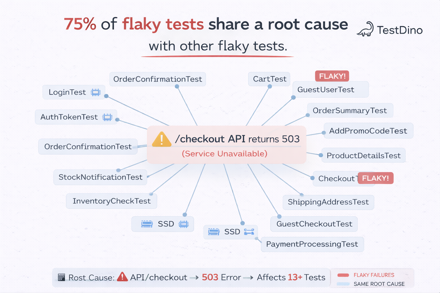 The practical implication: fixing one root cause can stabilize over a dozen tests at once.