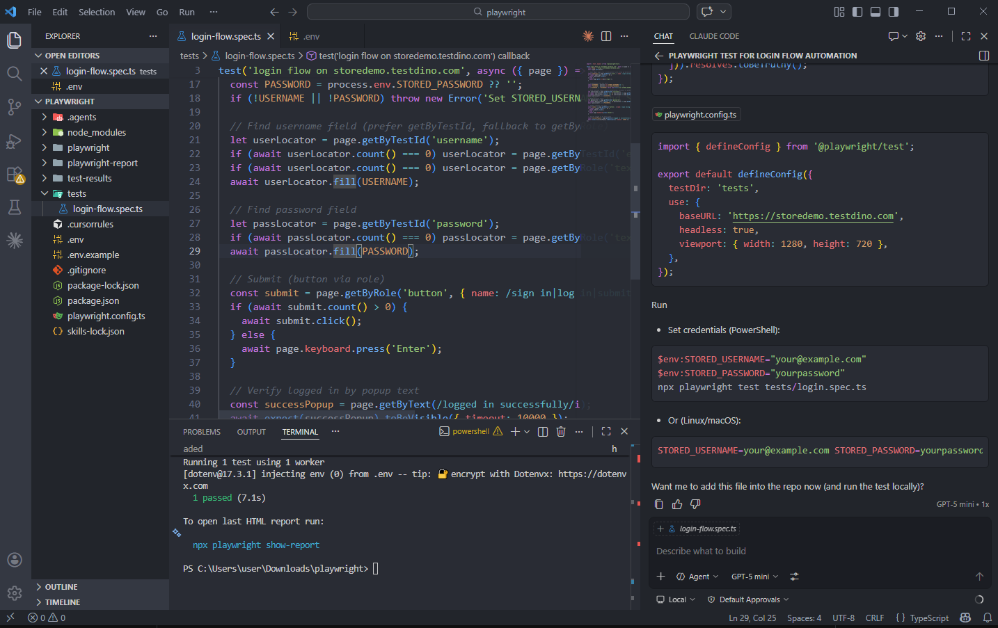 Run the test locally with npx playwright test tests/auth/login-flow.spec.ts --headed to verify it passes
