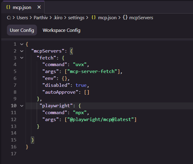 Tip: If you want to run the MCP browser in headed mode for debugging, add "--headed" to the args array. This lets you watch the browser as Kiro explores your app.