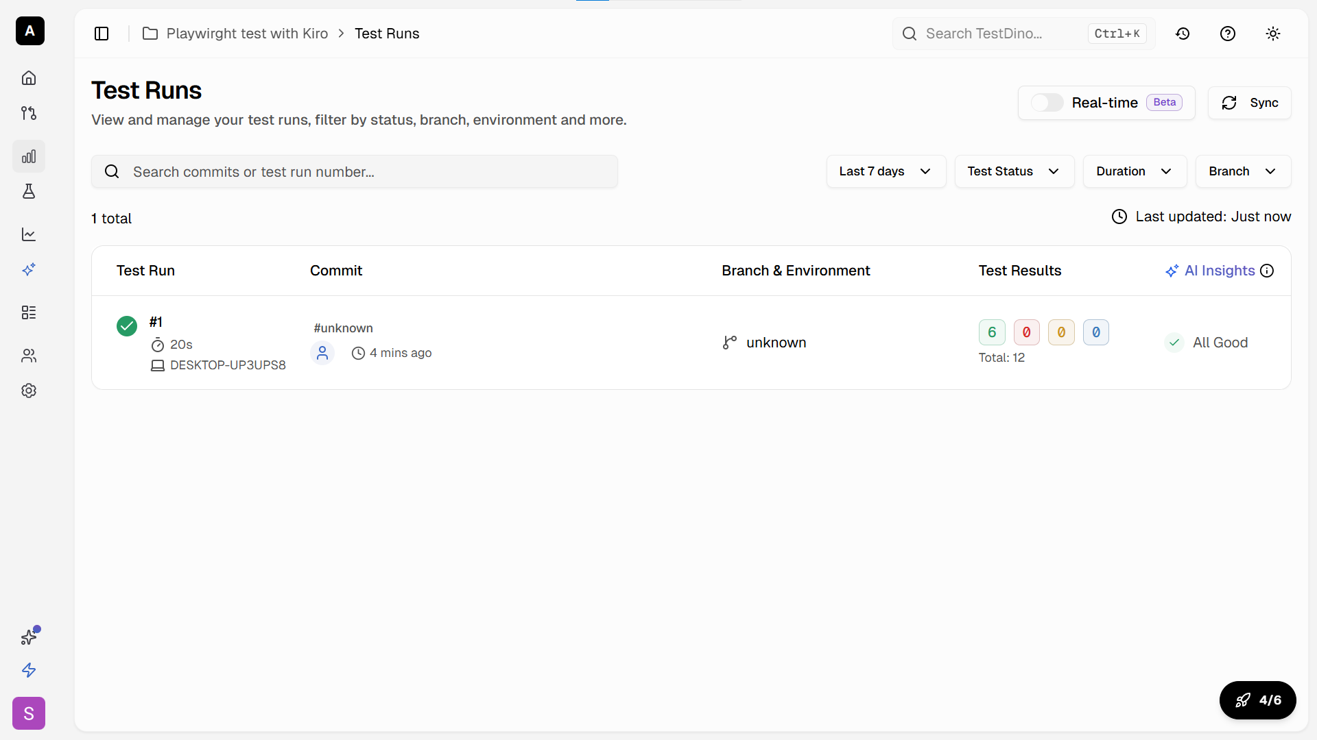 For your Kiro-generated tests, this is especially valuable. AI-generated tests often have subtle issues that only surface across multiple CI runs. TestDino tracks flaky patterns and shows you which tests need attention before they become a problem.