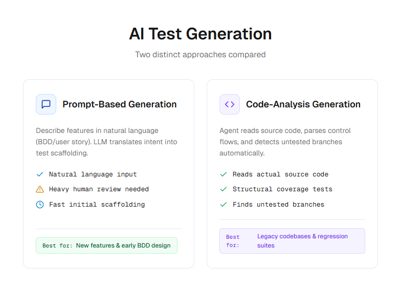 If you search for test generation strategies today, you will often find articles talking broadly about manual vs. automated testing, or methodologies like Behavior-Driven Development (BDD) and TDD.
