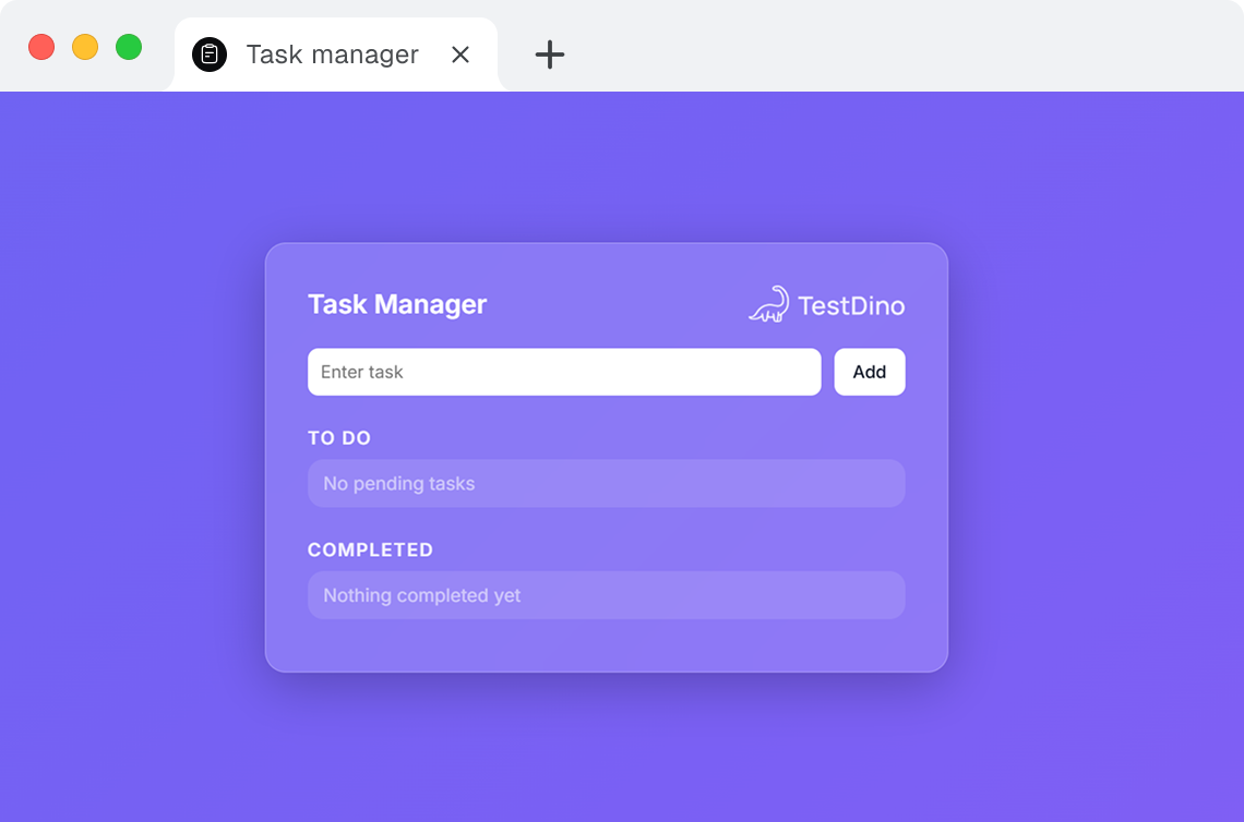 Open http://127.0.0.1:5000, and you'll see the task manager running. Try adding a task, editing it, marking it complete, and deleting it. That's the full flow we'll automate next.